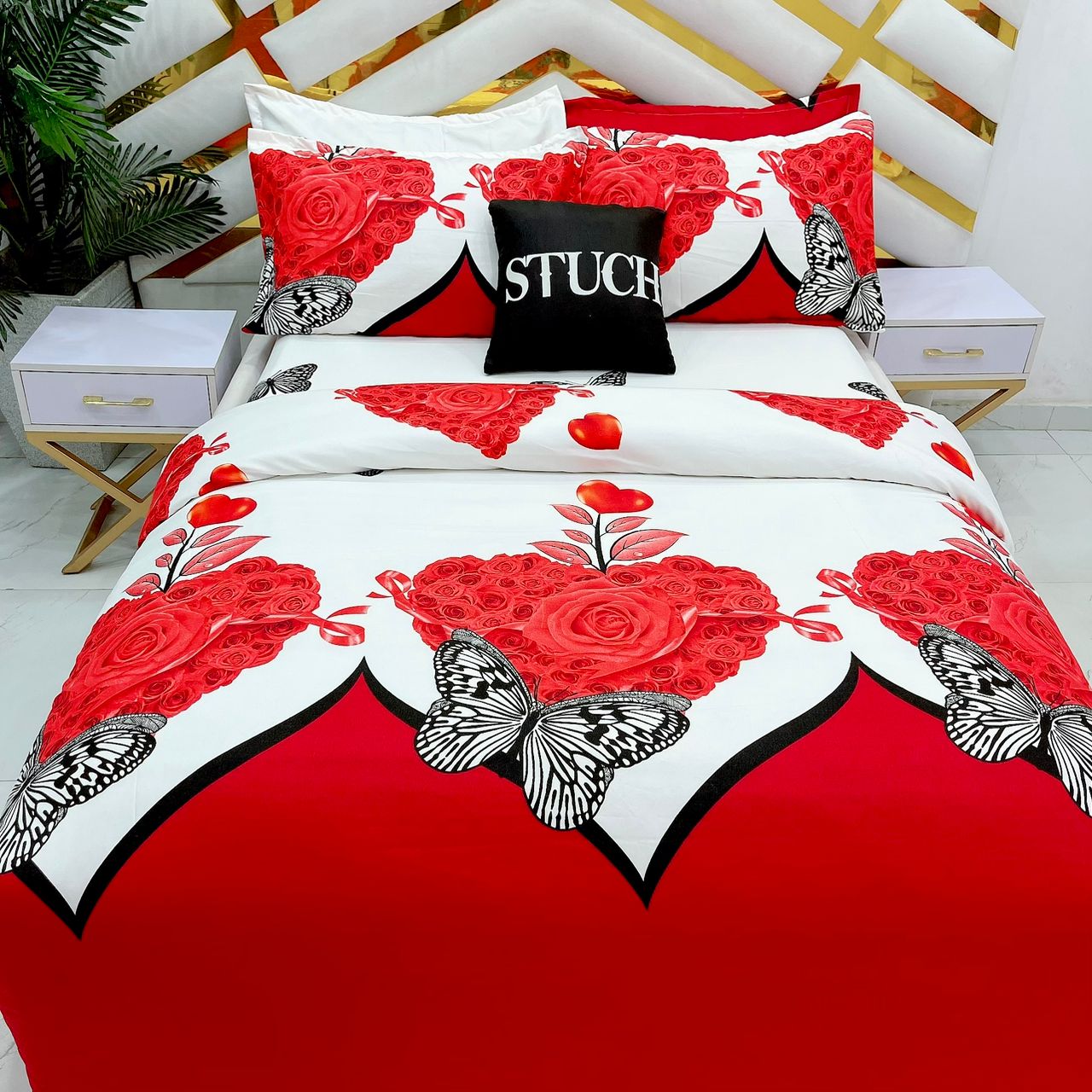 SIL9 RED LOVE 7/7 BEDSHEET WITH FOUR PILLOW CASES AND DUVET COVER (NO FIBER INSIDE)